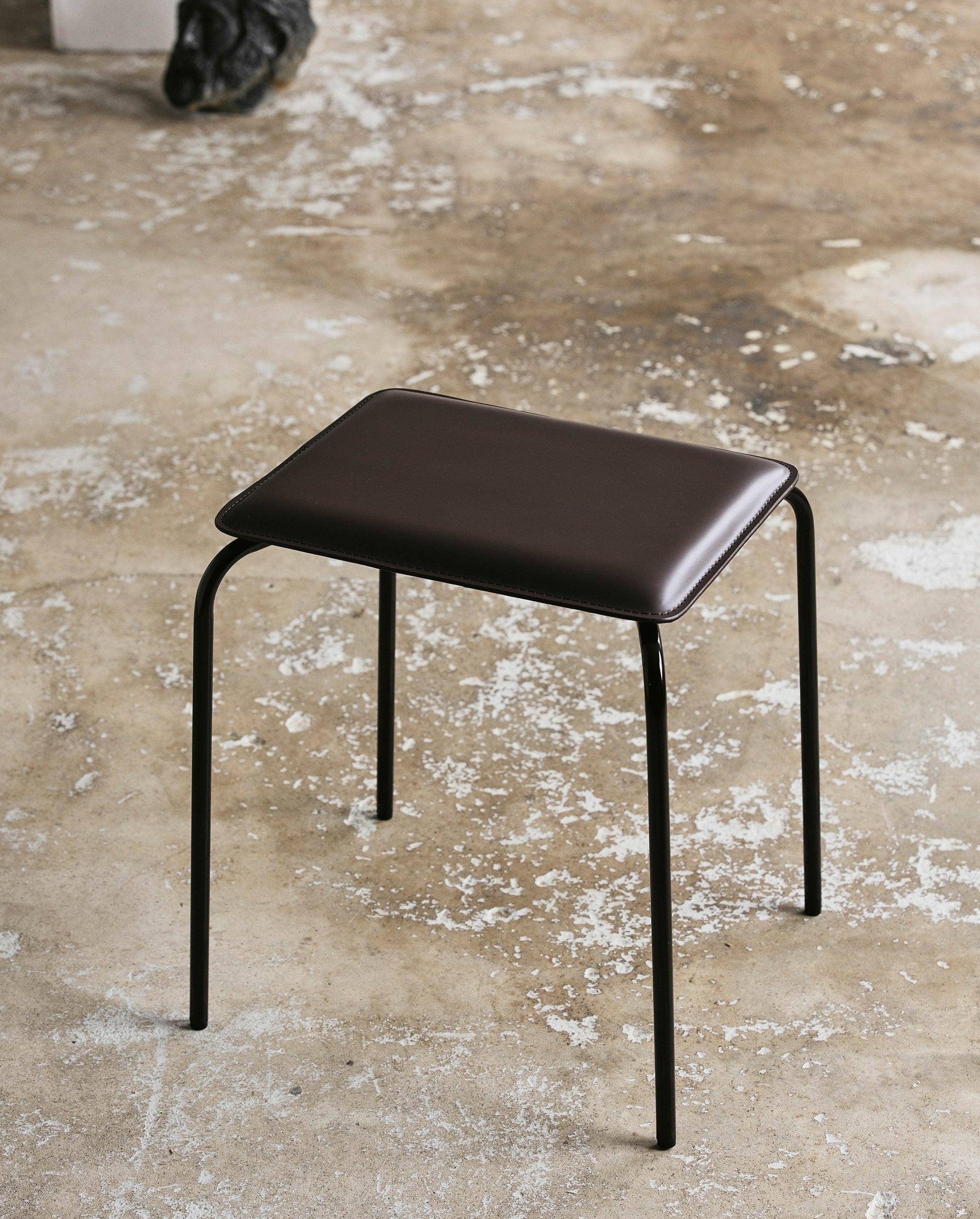 ESA stool with a metal frame and PU leather seat.#A classic, timeless stool where functionality and design come together seamlessly. Bring out the stool when an extra seating option is needed or use it as a table with a small tray on top. The possibilities are many, and in addition, the stool is practical as it can be stacked. A safe and elegant choice, though with an edge. Combine the different colors available for the ESA stool to create a bolder and more personalized look.##Unlike the other ESA stools, this edition comes with a glossy frame.##Seat dimensions: 41*32.#Maximum load: 120 kg.